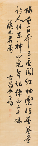 梅花百本三重閣 紅袖䨥姬數巻書 詩人住在神仙宅 年紀纔過二十餘 매화 백 그루가 있는 삼층 누각, 붉은 소매의 두 미인과 몇 권의 책. 시인은 신선의 집 같은 곳에 살고 있으니, 나이는 겨우 스물을 조금 넘겼을 뿐이네.