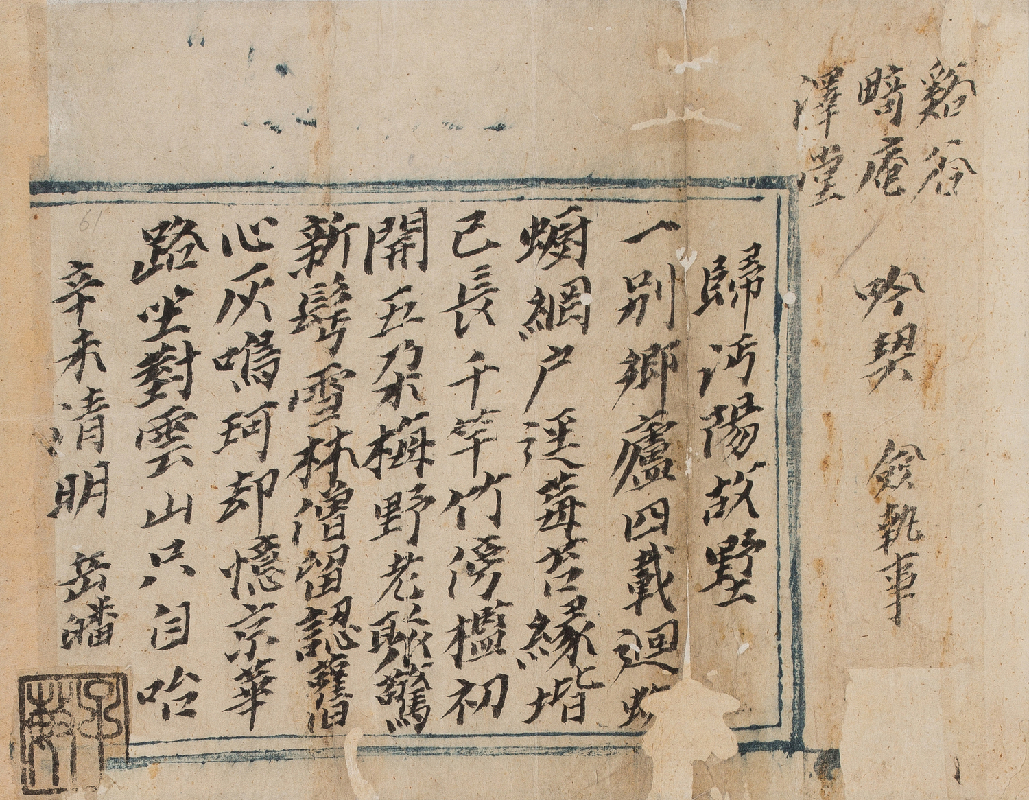 『동악선생집東岳先生集』 권13 습유록拾遺錄에 「귀면양고서歸沔陽故墅」로 수록