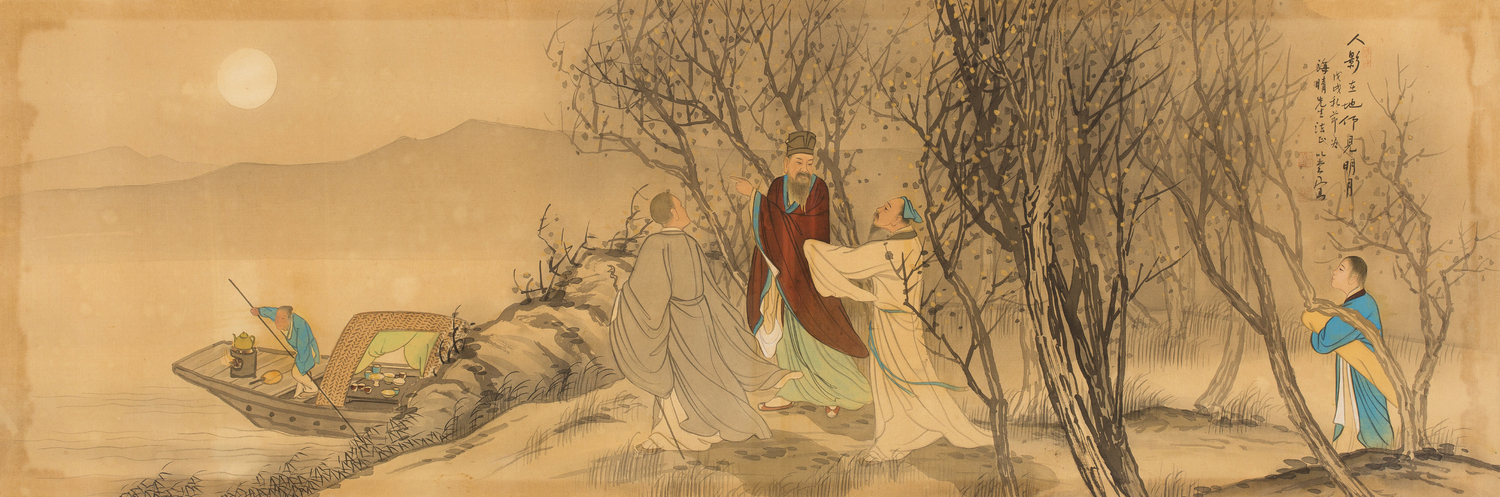 비단에 수묵담채