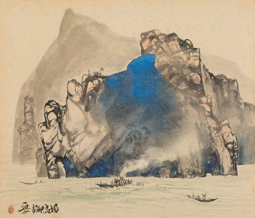 종이에 수묵담채
